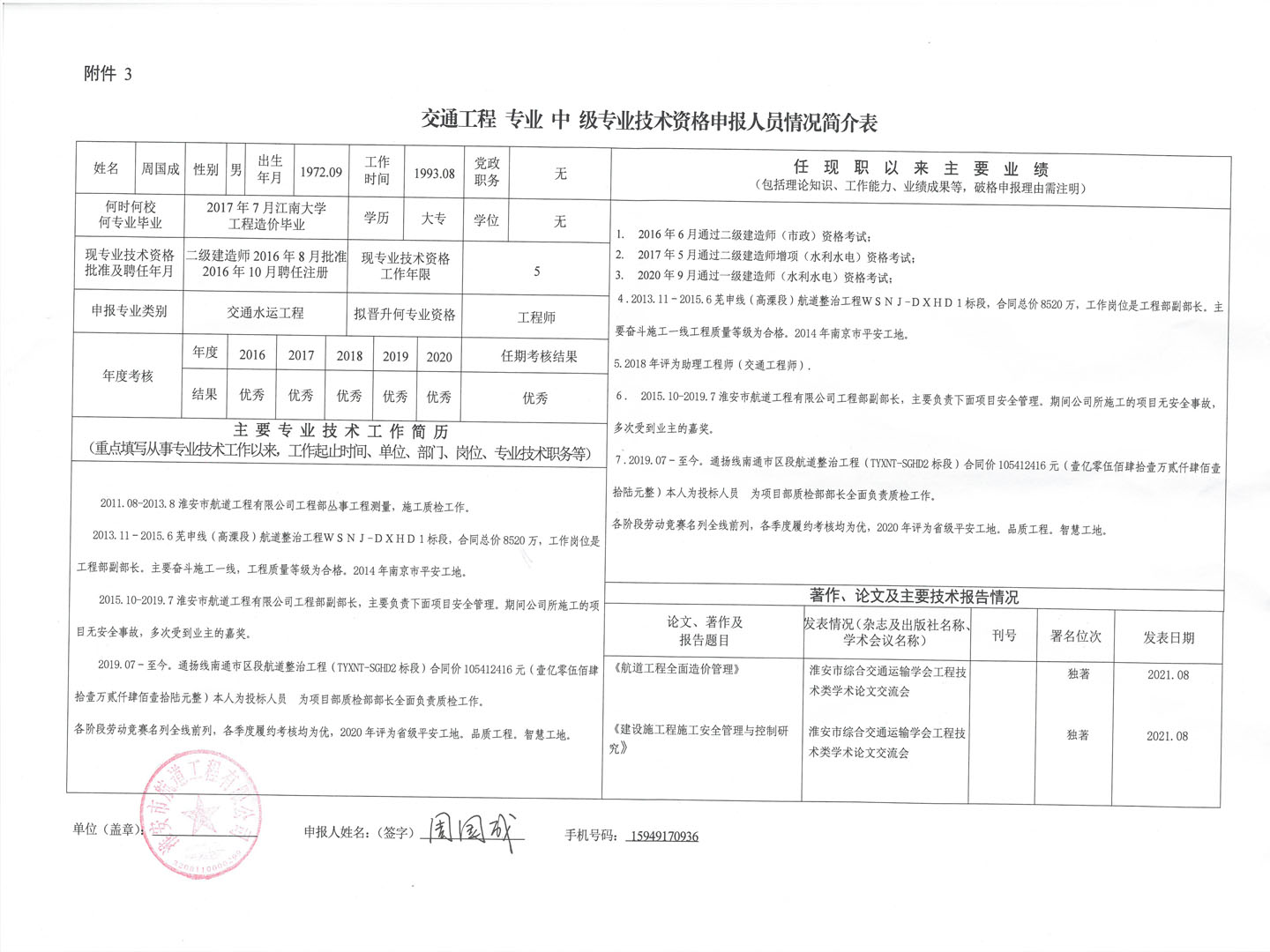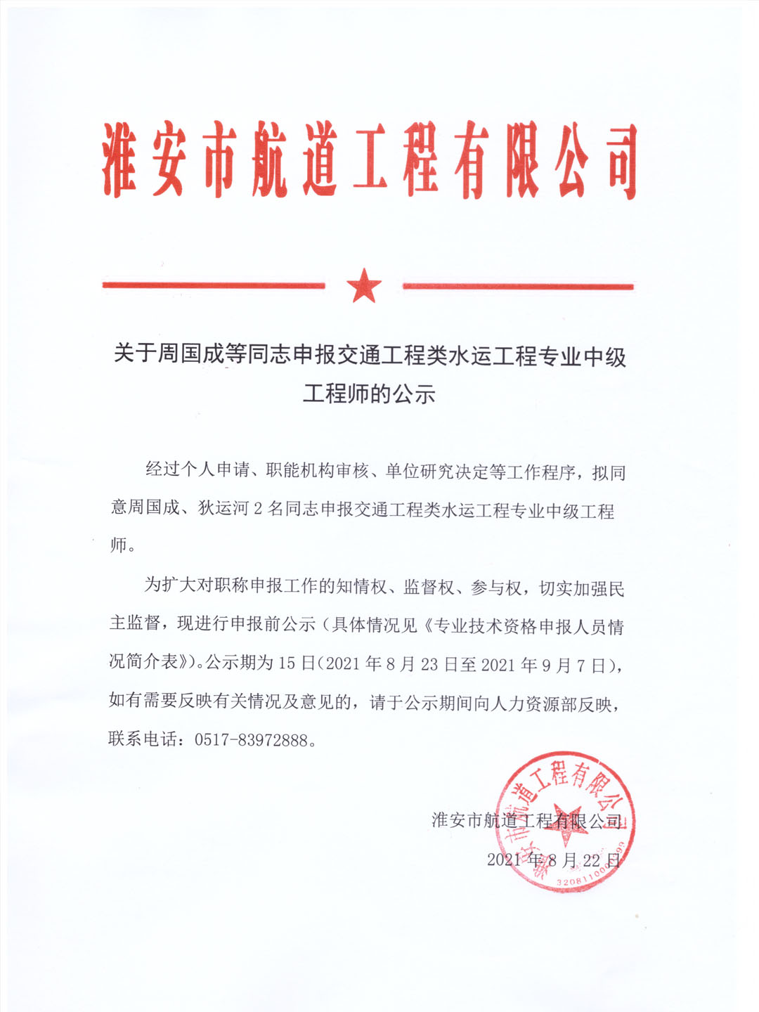 關(guān)于周?chē)傻韧旧陥蠼煌üこ填?lèi)水運工程專(zhuān)業(yè)中級工程師的公示